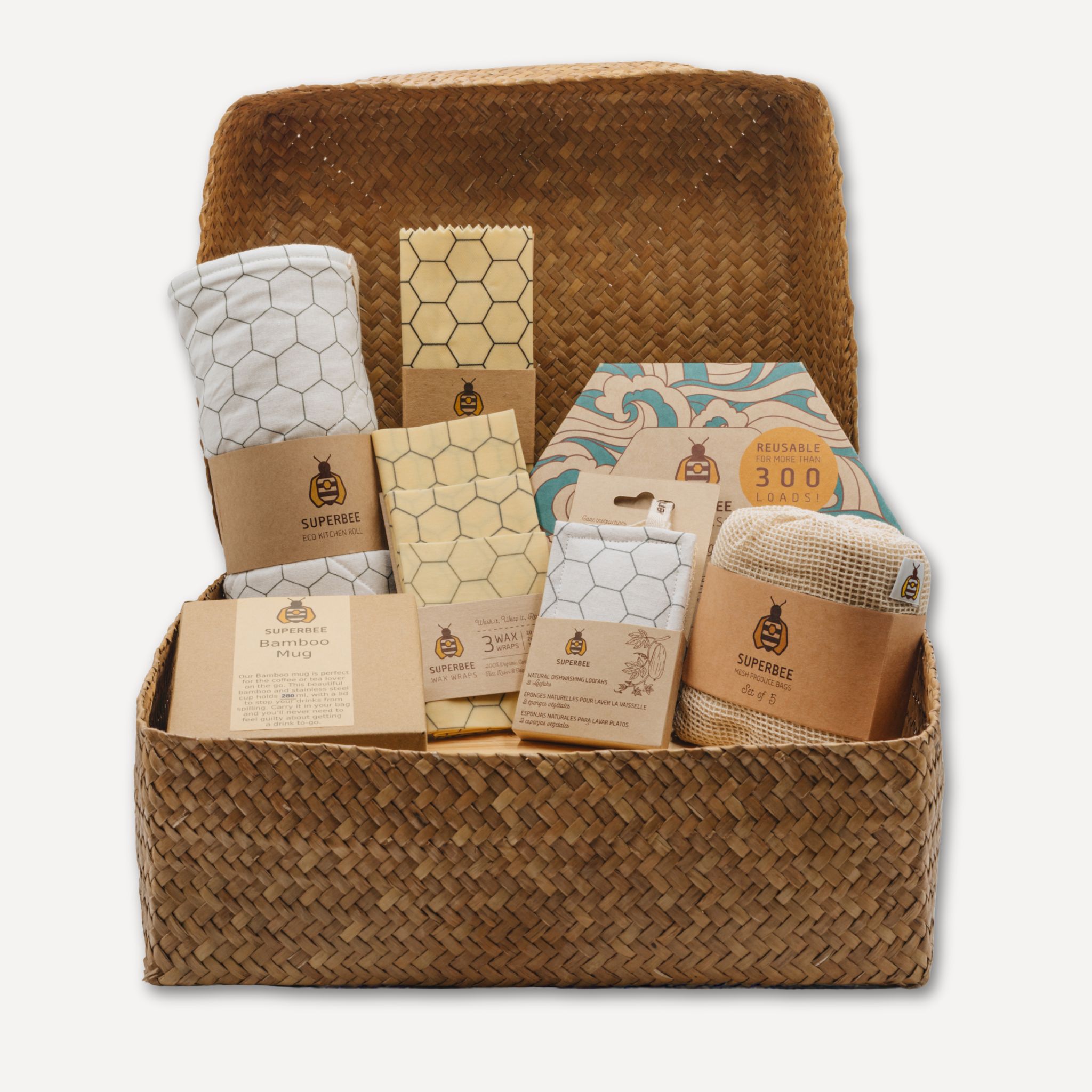 | ตะกร้าของขวัญ Hexagonia Bundle ของเราผสานความหรูหรา ประโยชน์ใช้สอย และวัตถุประสงค์การใช้งานอย่างลงตัว ตะกร้าของขวัญนี้ออกแบบด้วยลวดลาย Hexagonia มินิมอลที่ขายดีที่สุดของเรา ผลิตจากวัสดุธรรมชาติล้วน อัดแน่นไปด้วยสิ่งของจำเป็นที่ปราศจากพลาสติก เพื่อช่วยให้คนที่คุณรักใช้ชีวิตอย่างยั่งยืนมากขึ้น ทั้งที่บ้าน ที่ทำงาน และระหว่างเดินทาง ดีไซน์นี้ได้รับแรงบันดาลใจจากรูปทรงหกเหลี่ยม ซึ่งเป็นรูปทรงที่กลมกลืนและมีประสิทธิภาพที่สุดของธรรมชาติ รังผึ้งเป็นสัญลักษณ์ของความแข็งแกร่ง ความสมดุล และความเป็นชุมชนในโลกของผึ้ง ไม่เพียงแต่เป็นลวดลายที่เราชื่นชอบเท่านั้น แต่ยังเป็นดีไซน์ที่ขายดีที่สุดของเรามาหลายปี ด้วยความเรียบง่ายสะอาดตาและเหนือกาลเวลา สินค้าทุกชิ้นในตะกร้านี้ทำด้วยมือจากวัสดุธรรมชาติที่ย่อยสลายได้ทางชีวภาพ โดยช่างฝีมือผู้เชี่ยวชาญของเราในภาคเหนือของประเทศไทย ในฐานะบริษัทที่ได้รับการรับรอง B Corporation SuperBee ยึดมั่นในมาตรฐานสูงสุดด้านความรับผิดชอบต่อสังคมและสิ่งแวดล้อม การซื้อชุดของขวัญนี้ถือเป็นการสนับสนุนการเสริมสร้างพลังอำนาจให้ผู้หญิง ค่าจ้างที่เป็นธรรม และโลกที่มีสุขภาพดีขึ้น ภายในชุดประกอบด้วยโซลูชันที่นำกลับมาใช้ใหม่ได้สำหรับห้องครัว ห้องซักรีด และการจับจ่ายซื้อของ ซึ่งแต่ละอย่างได้รับการออกแบบมาให้ใช้งานได้ยาวนานและลดปริมาณขยะได้หลายปี ตั้งแต่ถุงเก็บอาหารผ้าใบเคลือบแว็กซ์ที่ช่วยรักษาความสดของขนมปัง ไปจนถึงม้วนกระดาษเช็ดครัวแบบรักษ์โลกที่ใช้แทนกระดาษเช็ดมือ ไปจนถึง Hexawash ถุงซักผ้าแบบลดขยะที่ปฏิวัติวงการของเรา คอลเลกชันนี้ช่วยให้การใช้ชีวิตอย่างยั่งยืนเป็นเรื่องง่าย สิ่งที่รวมอยู่: 1. ม้วนครัวอีโค่ ใช้แทน: กระดาษเช็ดมือและผ้าเช็ดปาก ขนาด: ม้วนผ้าเช็ดมือแบบถอดได้ 6 ผืน ผืนละ 10×10 นิ้ว (26 × 26 ซม.) วัสดุ: ผ้าฝ้ายออร์แกนิกที่ผ่านการรับรอง GOTS 100% และผ้าเช็ดมือที่ดูดซับน้ำได้ดี คุณสมบัติ: สามารถซักได้ นำกลับมาใช้ใหม่ได้ และใช้งานได้ยาวนาน เหมาะสำหรับเช็ดคราบหก ทำความสะอาด และใช้ในครัวทุกวัน 2. ฟองน้ำขัดจานใยบวบ – ชุด 2 ชิ้น ขนาด: 7 ซม. x 11 ซม. ต่อชิ้น (2.8 x 4.3 นิ้ว) วัสดุ: ต้นใยบวบธรรมชาติ 100% พร้อมส่วนรองที่ทำจากผ้าฝ้ายออร์แกนิกที่ผ่านการรับรอง GOTS 100% รีไซเคิลจากการผลิตแผ่นห่อด้วยขี้ผึ้งของเรา คุณสมบัติ: มีคุณสมบัติต้านเชื้อแบคทีเรียตามธรรมชาติ ไม่ทำให้เกิดรอยขีดข่วน สามารถทำปุ๋ยหมักได้ 100% 3. ชุดห่อขี้ผึ้ง – 3 ขนาด ขนาด: เล็ก 8×8 นิ้ว, กลาง 10×10 นิ้ว, ใหญ่ 13×13 นิ้ว (S 20×20 ซม. | M 26×26 ซม. | ยาว 33×33 ซม.) วัสดุ: ผ้าฝ้ายออร์แกนิ